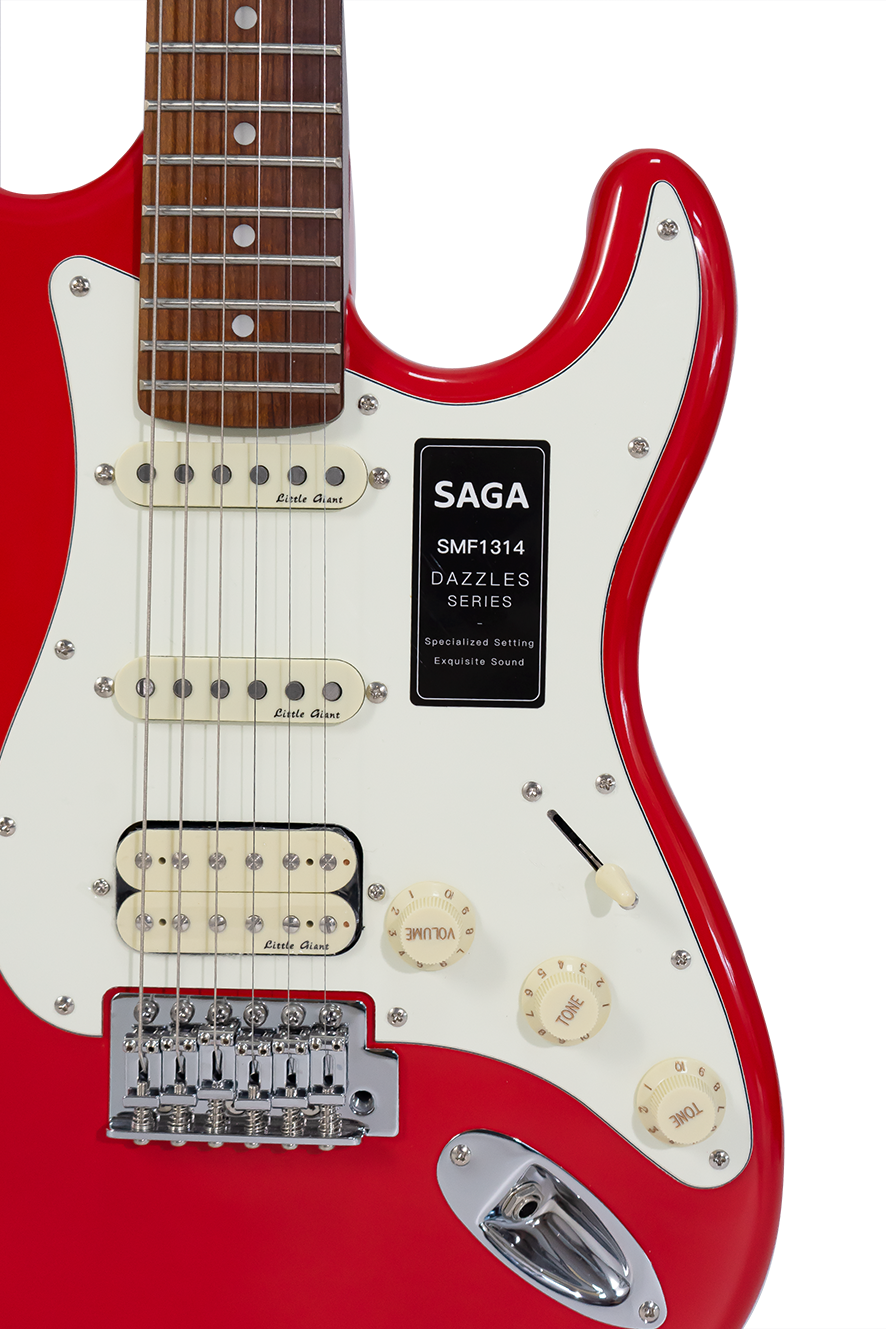 The SMF1314 is the first model in the SAGA Dazzles electric guitar series. Since its launch, it has received wide acclaim from musicians and consumers across multiple countries. Equipped with SAGA’s self-developed Little Giant pickups, many players believe its tone rivals that of international electric guitars priced at $2,000. They also praise its appearance and playability as being on par with leading global brands.