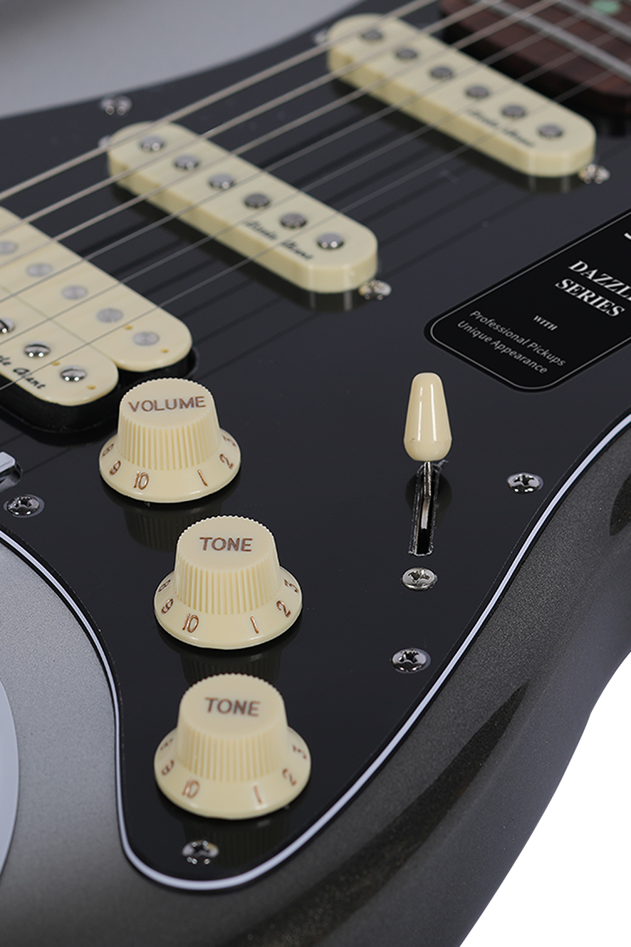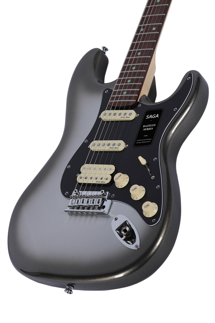 Dazzles Mercury Gray — a classic metallic finish with fine, delicate metal flakes that shimmer brilliantly under the sunlight. Equipped with SAGA’s self-developed Little Giant II pickups and a compact double-locking tremolo bridge, it delivers outstanding tone and enhanced performance for every player.