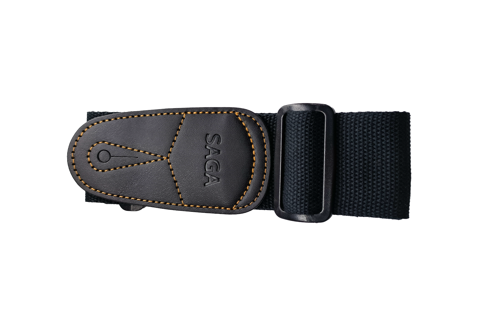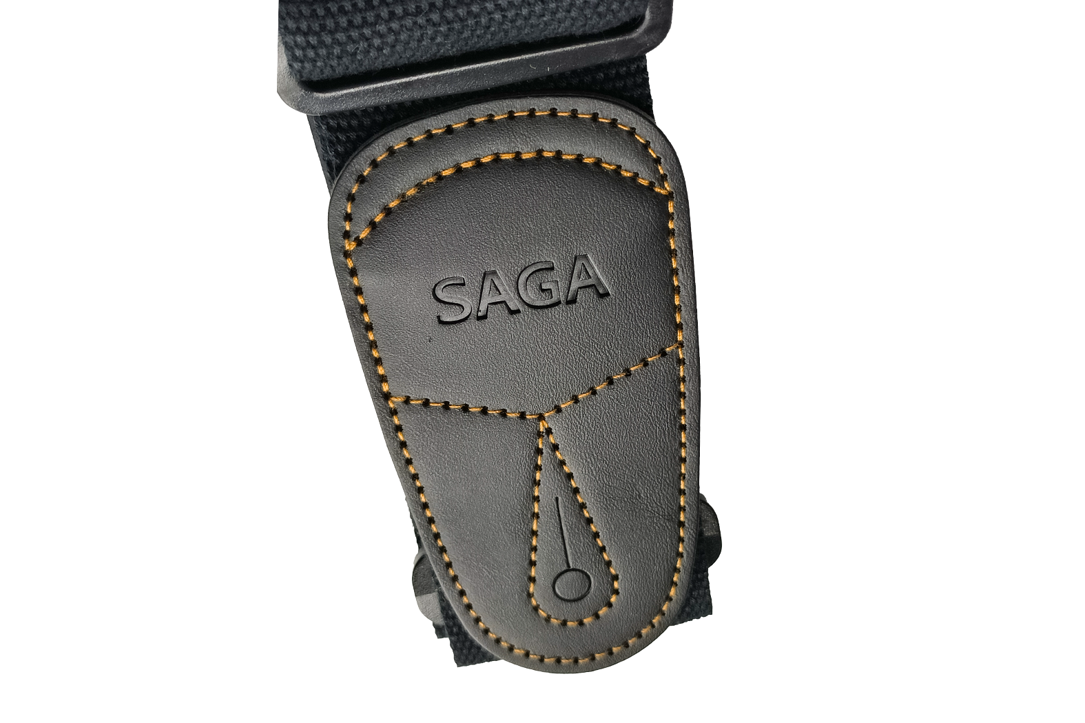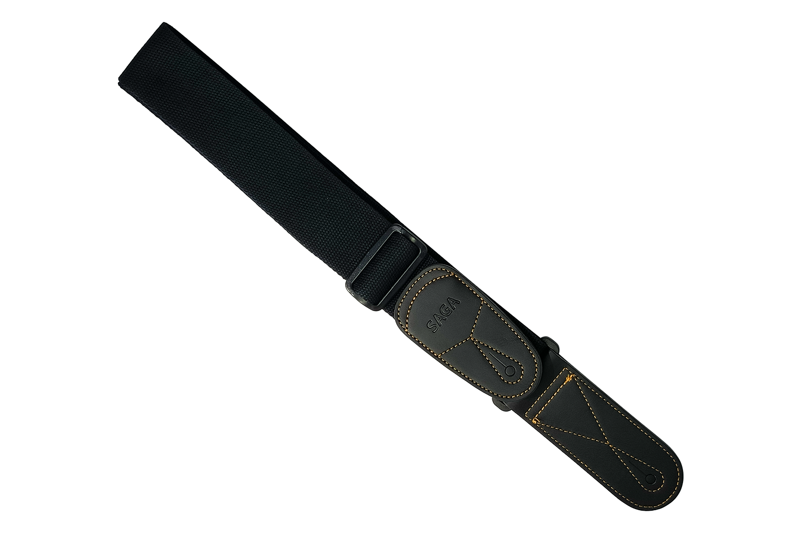 SAGA Guitar Strap — crafted with genuine leather ends for long-lasting durability and resistance to deformation at the strap button holes. The strap itself is made from breathable pure cotton, offering comfort, wear-resistance, and ventilation — keeping you comfortable even during long playing sessions.