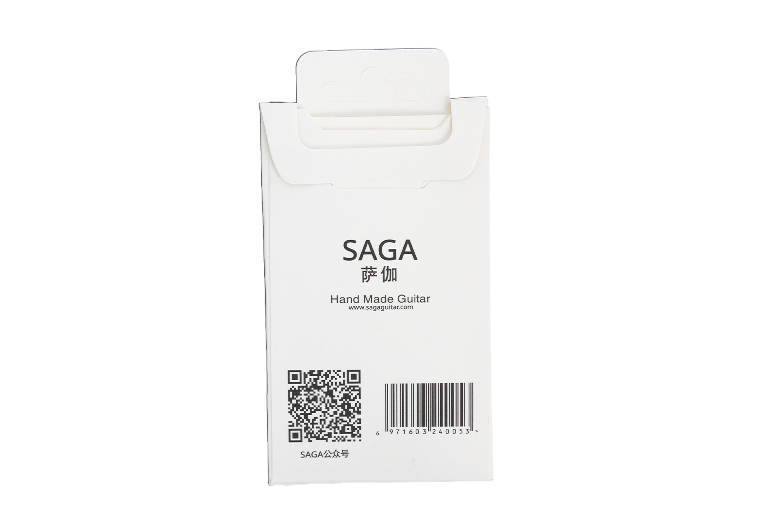 The SAGA P2 Picks are crafted from classic celluloid, offering toughness, slip resistance, durability, and a smooth feel. Each set comes with three picks of varying thicknesses for different styles: