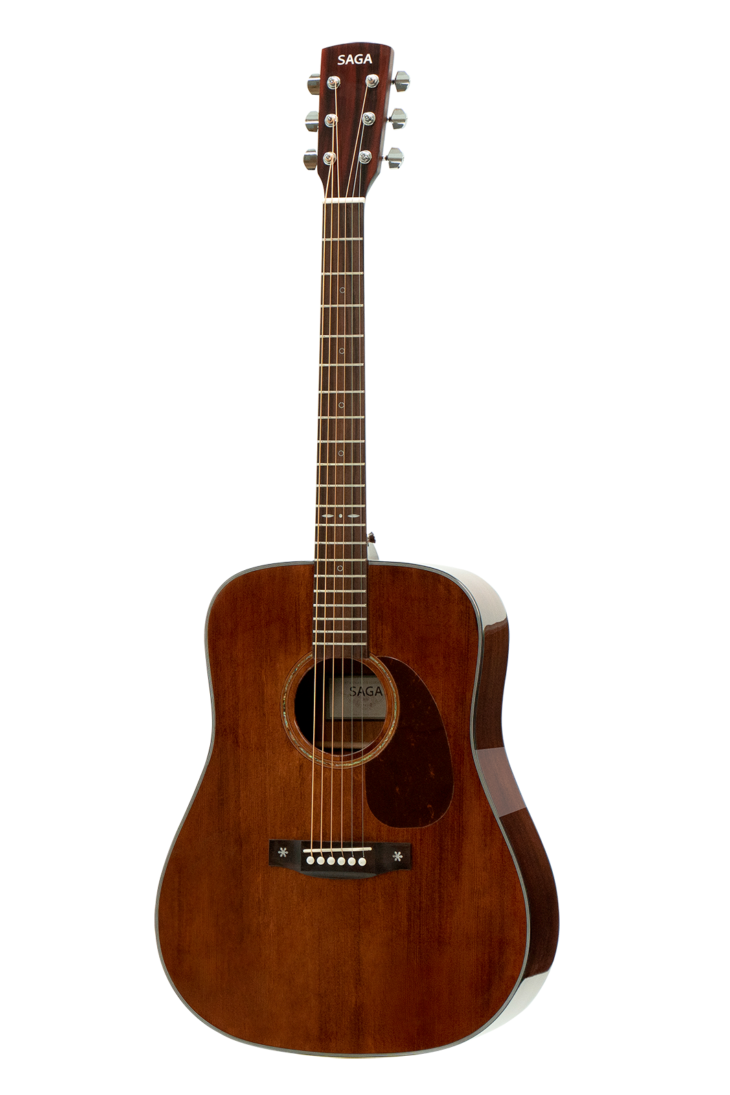 The SAGA 830 Series features a torrefied solid Sitka spruce top, whose heat-treated timber blends stiffness and elasticity to deliver a warm, open tone with a broad dynamic range and crisp articulation. Paired with mahogany back and sides that add warmth, focused mids and stable projection, the 830 offers refined tonal depth and reliable performance across changing climates.