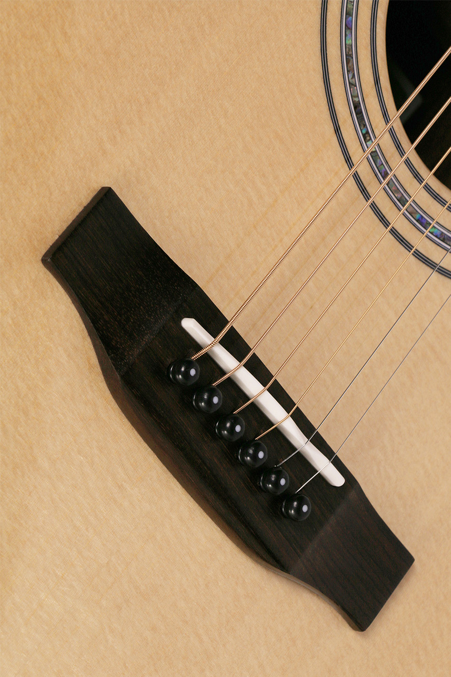 The nut and saddle of this model are made of high density man-made material, more efficient at transferring vibrations to the guitar top, resulting in richer and fuller tone.
