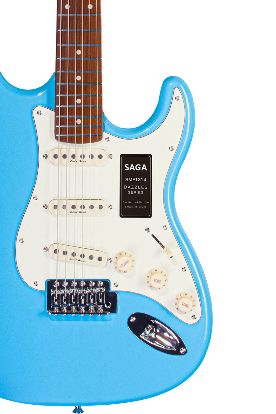 The SMF1314 is the first model in the SAGA Dazzles electric guitar series. Since its launch, it has received wide acclaim from musicians and consumers across multiple countries. Equipped with SAGA’s self-developed Little Giant pickups, many players believe its tone rivals that of international electric guitars priced at $2,000. They also praise its appearance and playability as being on par with leading global brands.