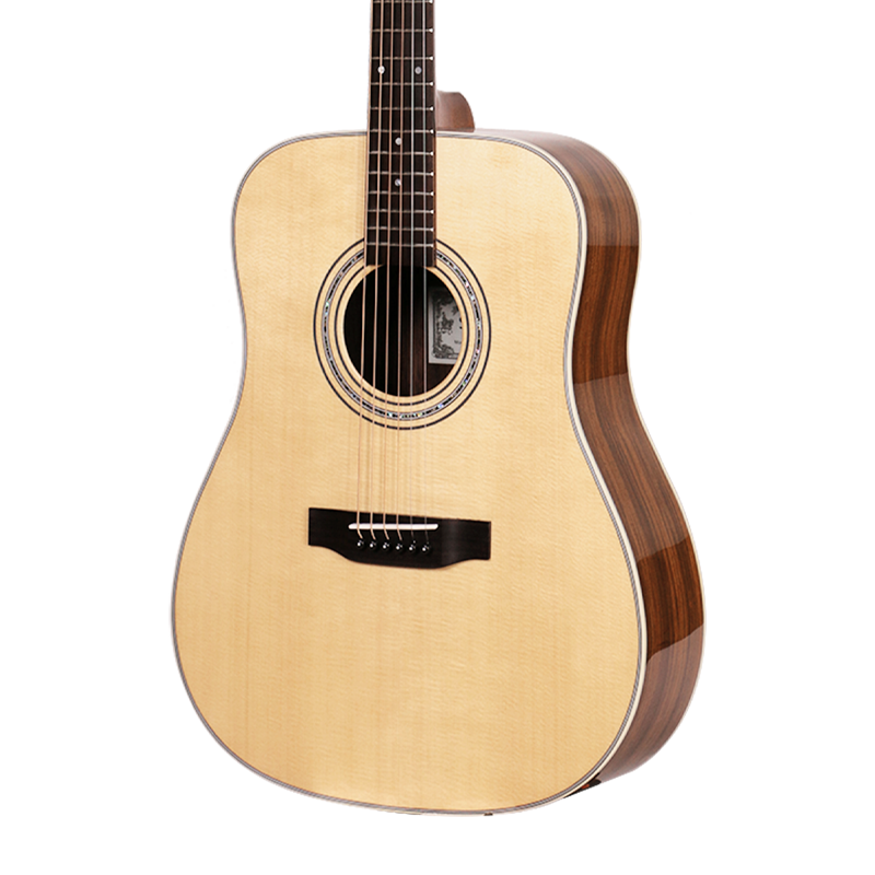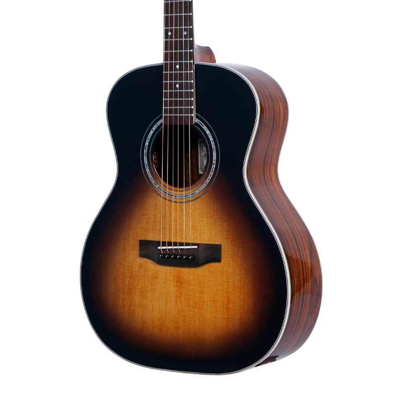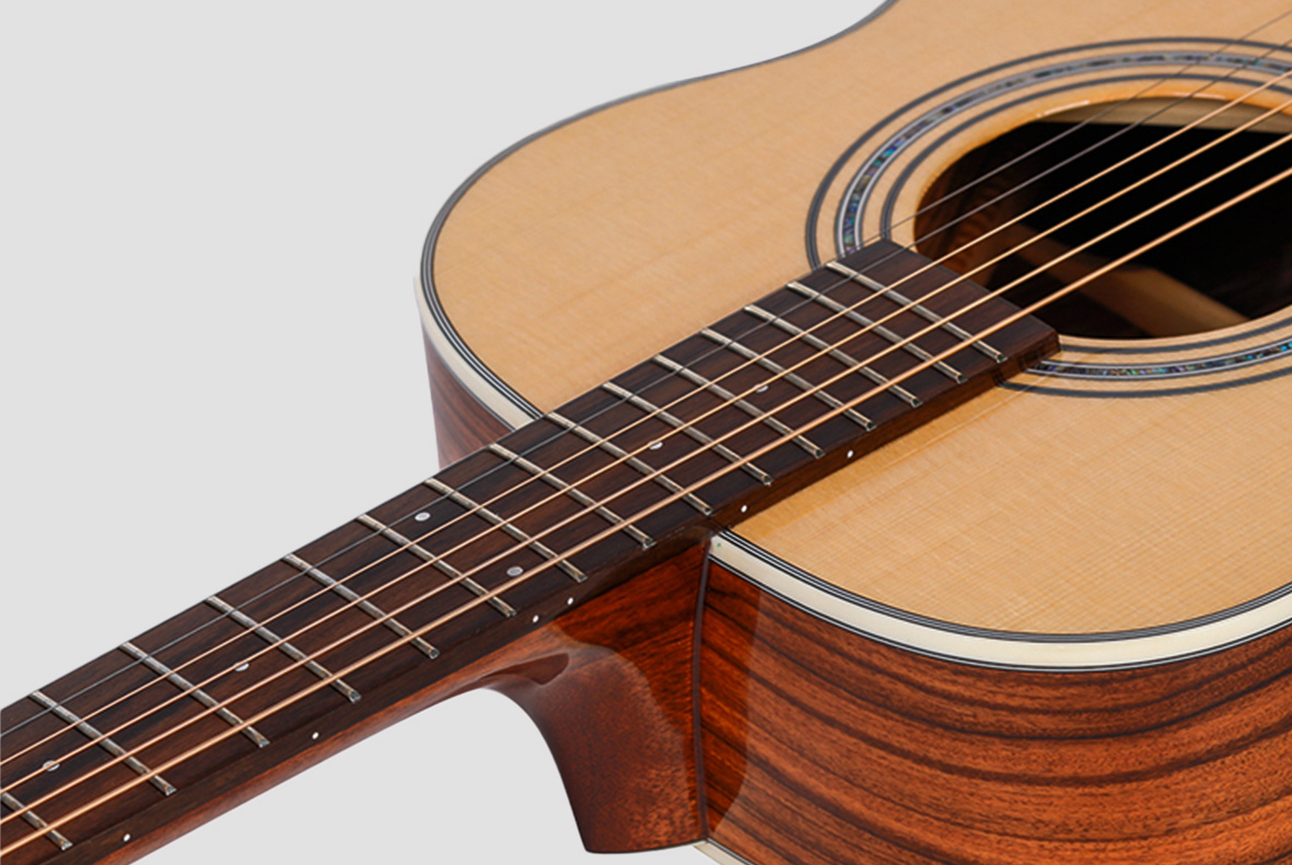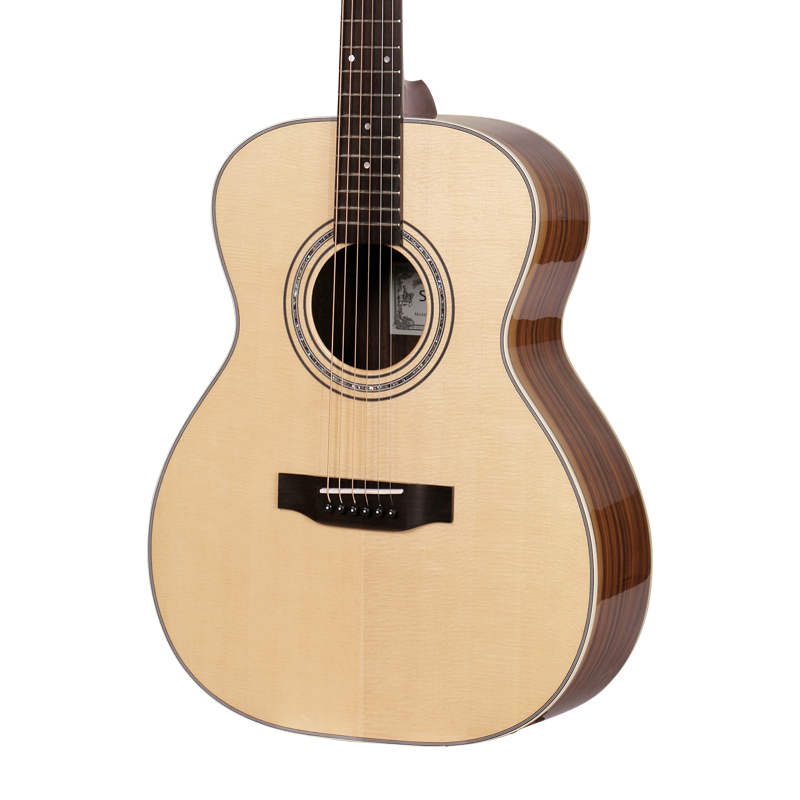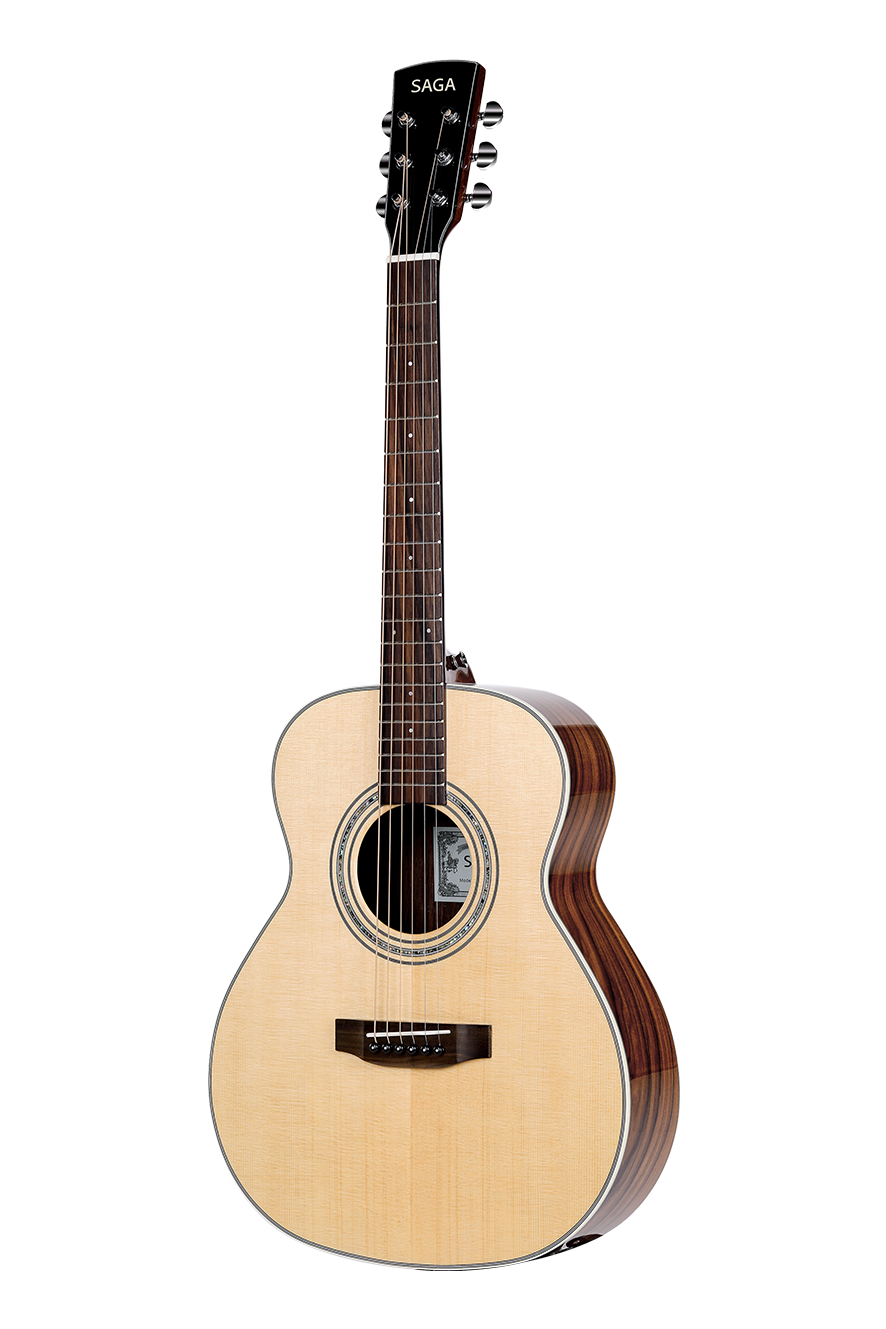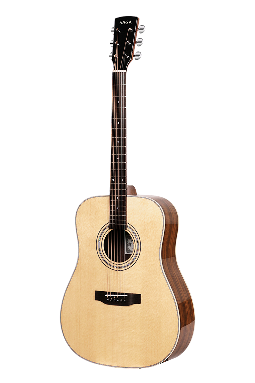 The SAGA 850 Series glossy solid-top guitar features a heat-treated solid spruce top paired with Santos rosewood back and sides. Its most distinctive highlight lies in the striking and elegant grain of Santos rosewood — one of the most beloved tonewoods among guitar enthusiasts worldwide.