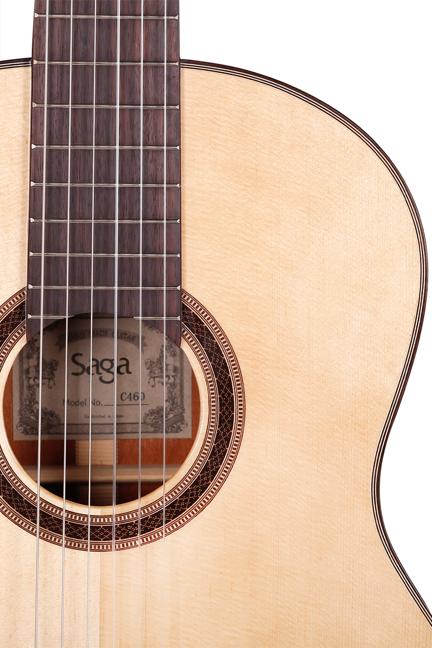 C460 features a solid Spruce top and Mahogany back&sides, with a stunning glossy finish. This gives the C460 a solid, rich tone and outstanding projection.
