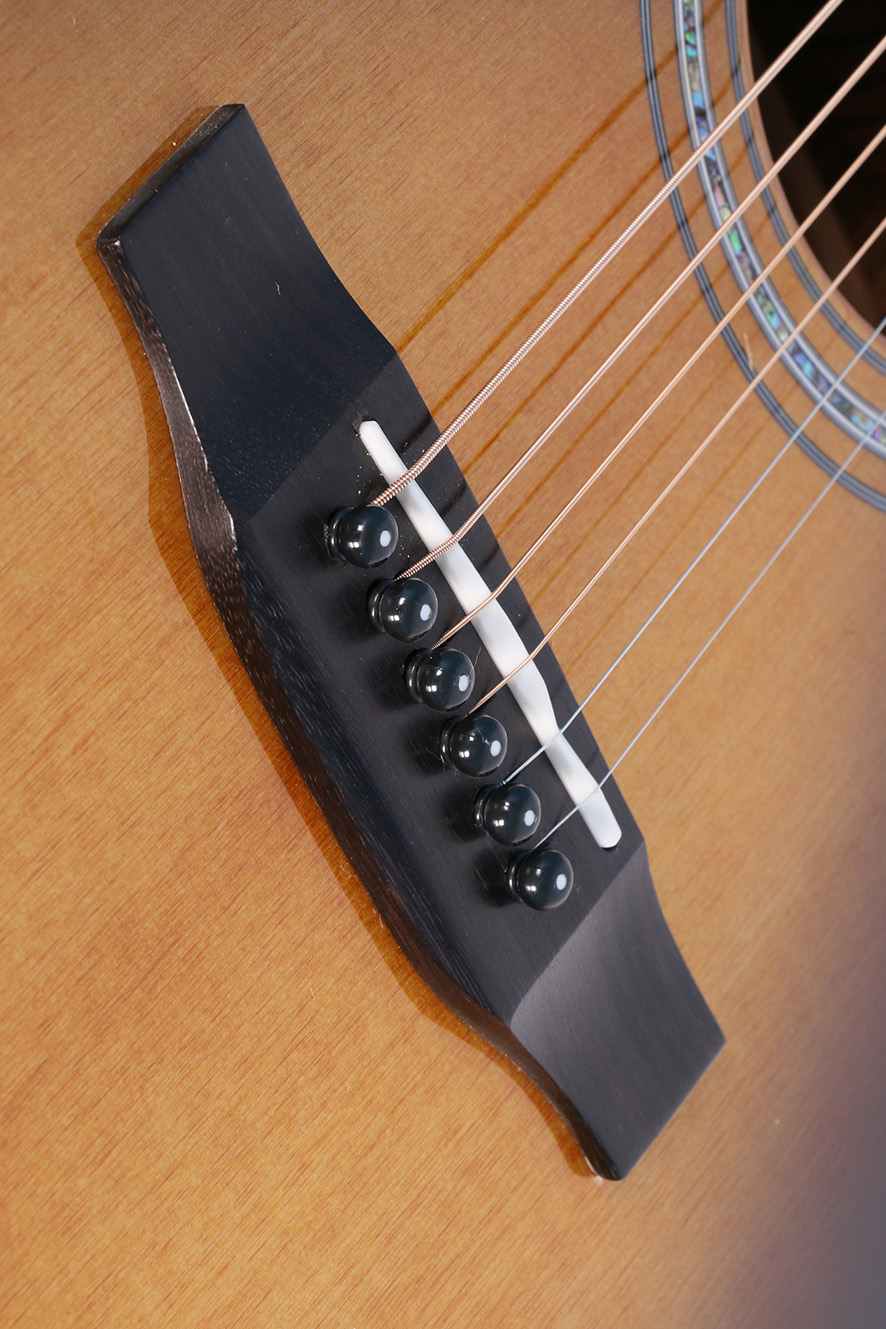 The nut and saddle of this model are made of high density man-made material, more efficient at transferring vibrations to the guitar top, resulting in richer and fuller tone.