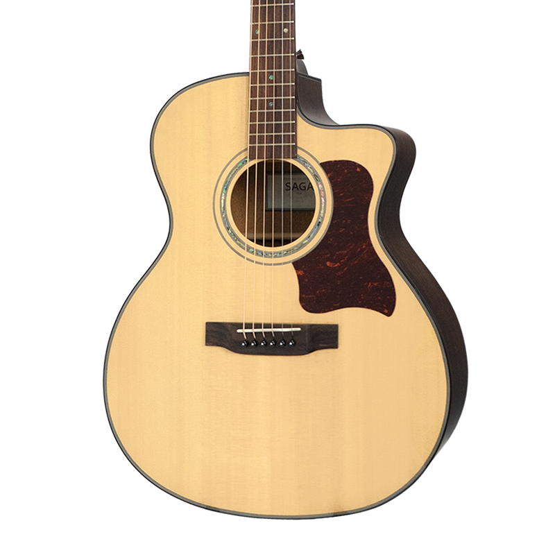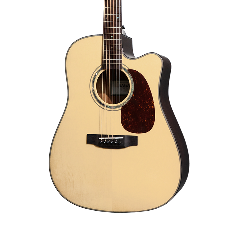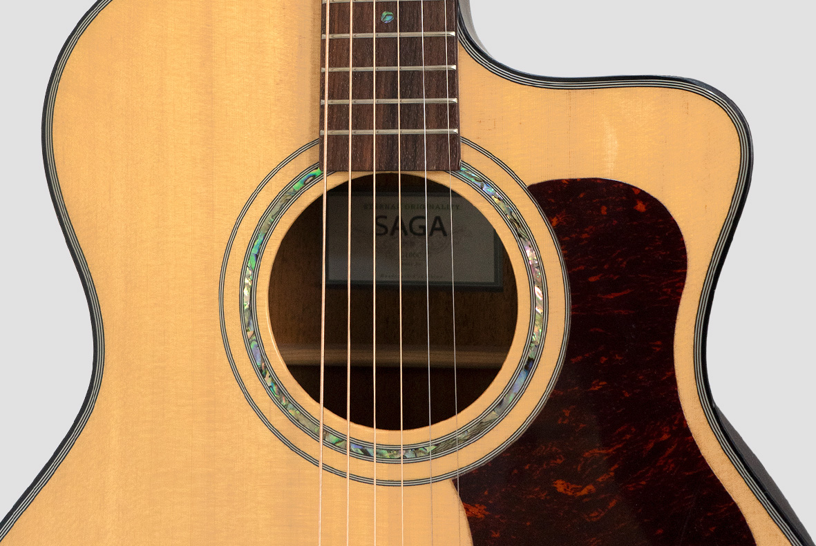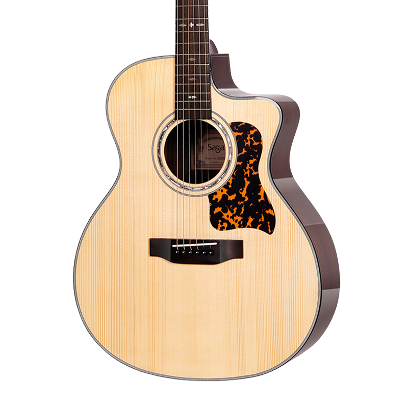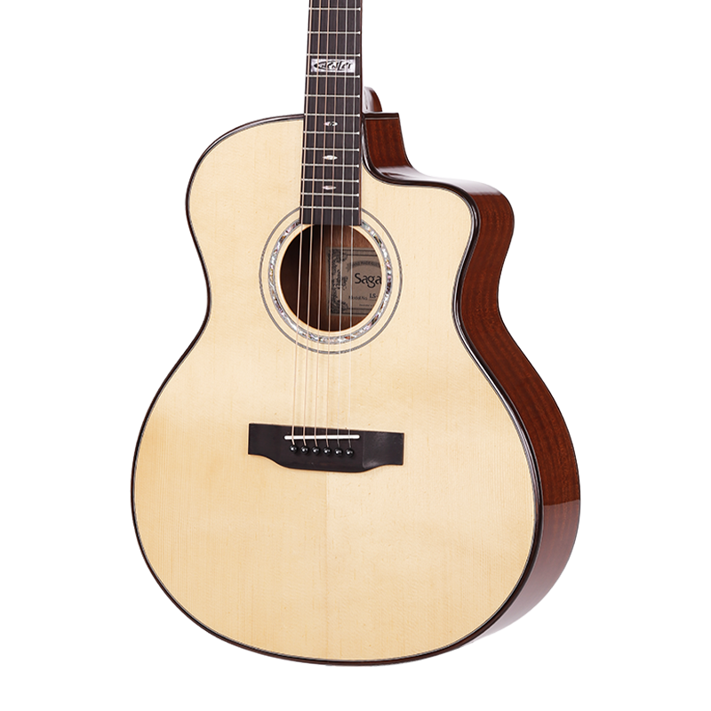 The SAGA Special Solid-Top Series includes a variety of models, each featuring a heat-treated solid wood top paired with different back and side tonewoods such as rosewood, walnut, and koa. This series was created to meet the preferences of players who value specific tonewood configurations, making it a distinctive highlight within the SAGA lineup.